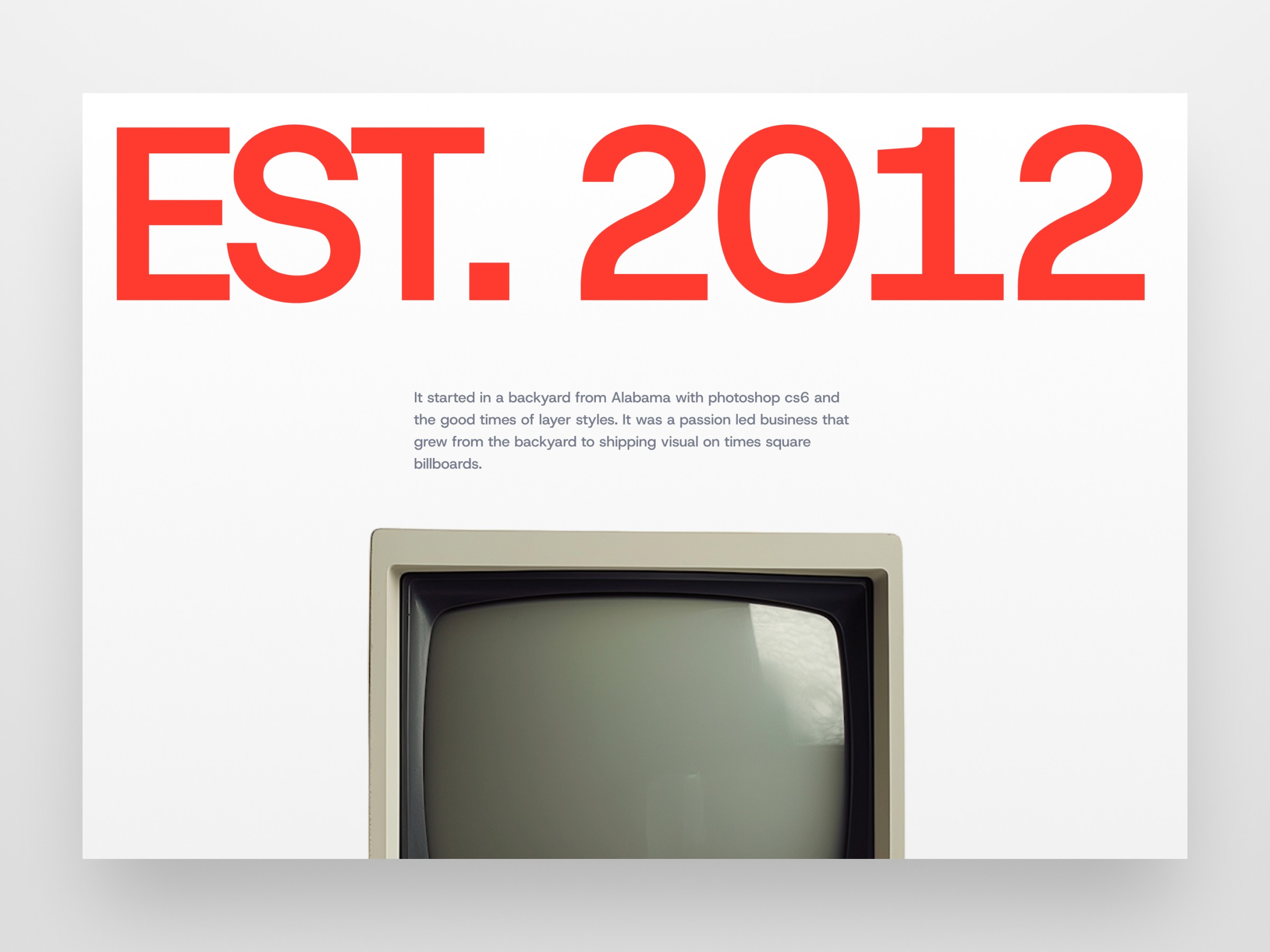 It started from a backyard in Alabama with photoshop cs6 and the good times of layer styles. It was a passion led business that grew from the backyard to shipping visual on times square billboards.